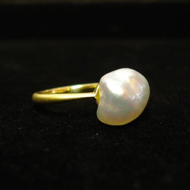 K18イエローゴールド(マット仕上げ)のリングに南洋ケシパールをシンプルにあしらったリングです