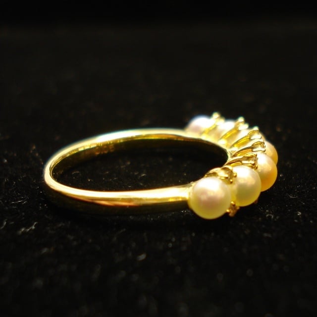 K18のリングにベビーパール7粒とメレーダイアをあしらったでデザインです