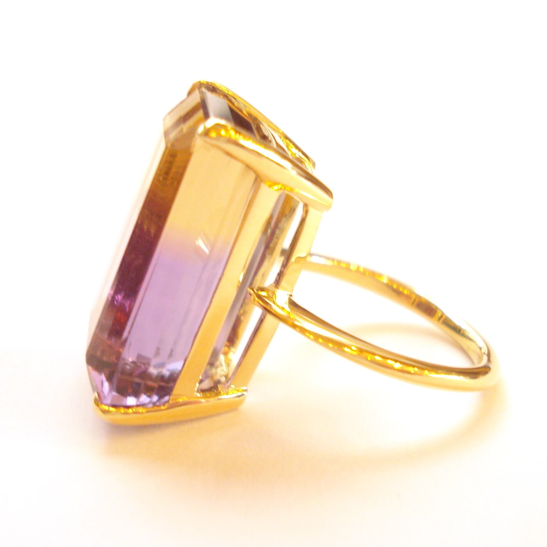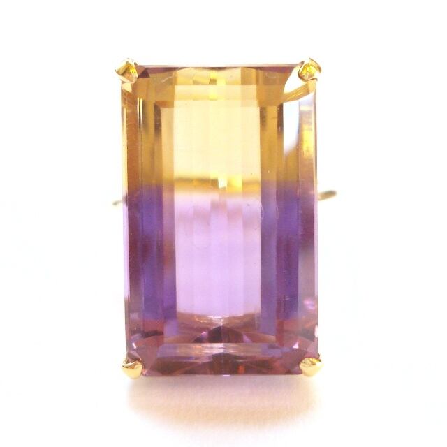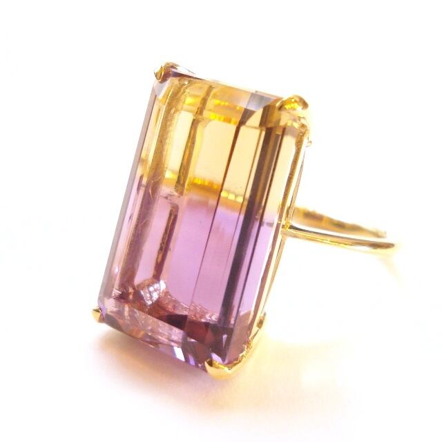 K18YG台に大粒アメトリン(アメジストとシトリンのバイカラー)をあしらったリングです。