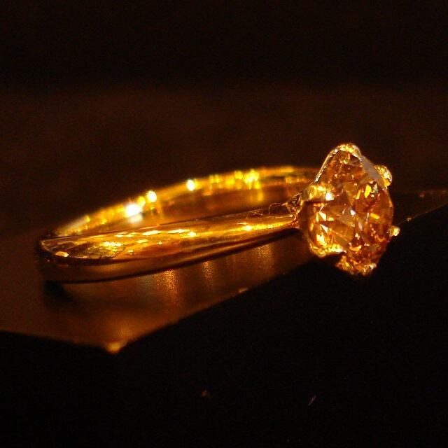 K18YG台(ツメPT)に1カラットアップのファンシーライトブラウンダイヤモンドをあしらったリングです。