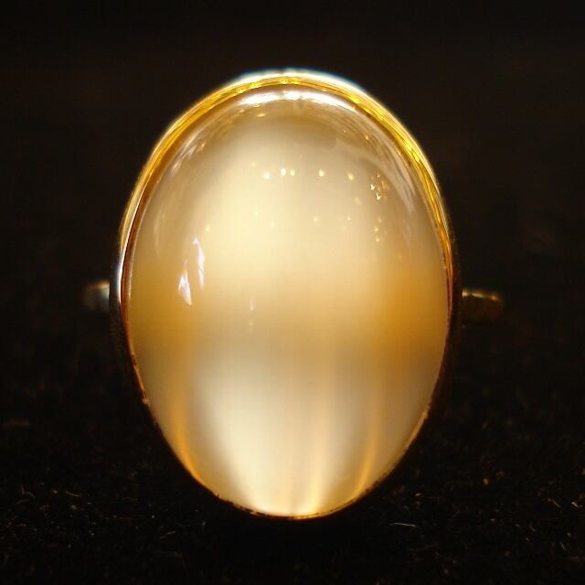 K18YG台にムーンストーンキャッツアイをあしらったリングです。