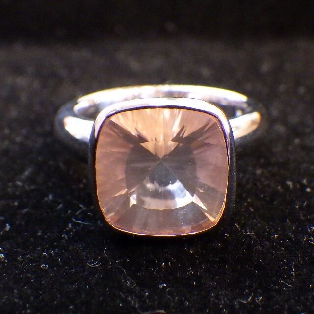 シルバー台にコンケーブカットの大粒ローズクォーツをあしらったリングです。