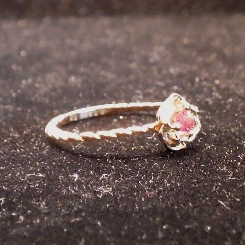 K18YG台のローズデザインにピンクトルマリンをあしらったリングです。