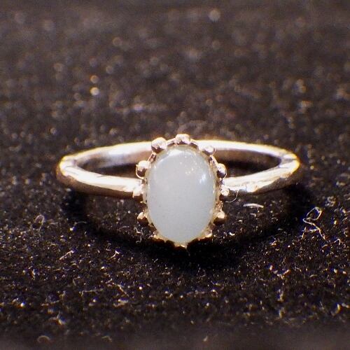 K18YG台にミルキーアクアマリンカボッションをあしらったリングです。