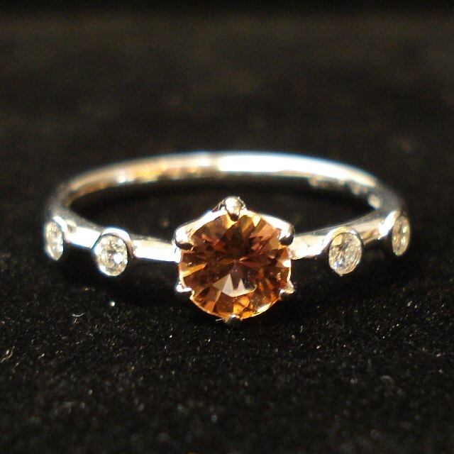 インペリアルトパーズを中石、脇にメレーダイアをあしらったクラシカルなデザインのPTリングです