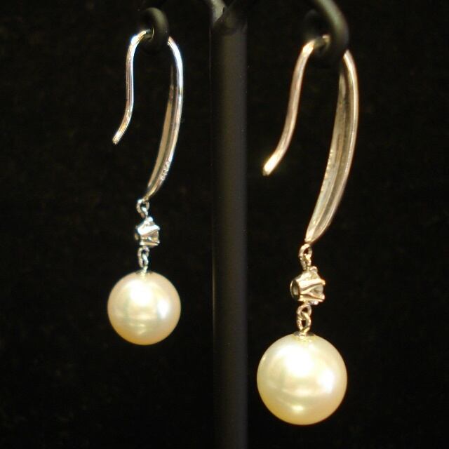 プラチナ台に9mmアコヤパール、上部にダイアモンドをあしらったピアスです
