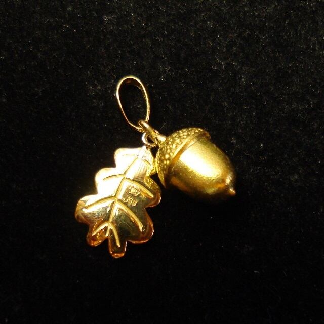当店定番のどんぐり&リーフのK18イエローゴールドのデザインペンダントトップです
